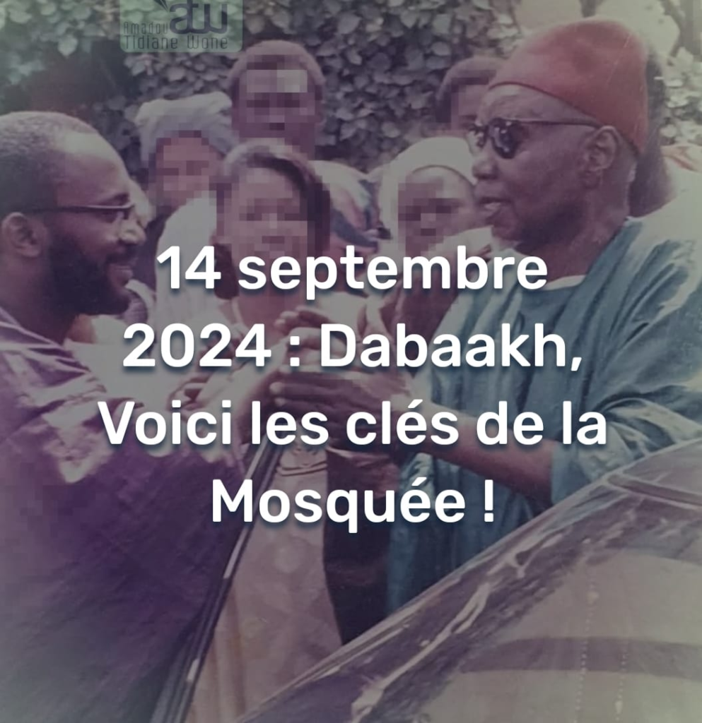 Ce 14 septembre a donc un gout particulier ! C’est en ce jour, en effet, qu’il a été procédé à la remise symbolique des clés de l’édifice, rénové et porté au rang de son temps, de la Grande Mosquée de Tivaouane. Car cette Mosquée, au plan spirituel et ésotérique, est fondée depuis 1904, année de la naissance de Dabakh, justement, et où commencèrent les travaux de l’édifice initial sous la conduite du phare de Tivaouane, Cheikh Seydi El Hadji Malick Sy, propagateur de la Voie Spirituelle Soufie Tijany au Sénégal et bien au-delà. Ses disciples et leurs successeurs en sont les gardiens essentiels et permanents.