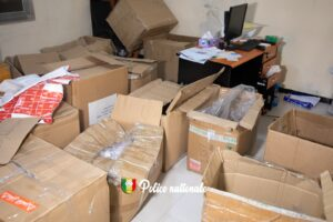 Une perquisition menée à leurs domiciles et lieux de travail a permis de découvrir un important stock de produits médicaux non autorisés. Le matériel saisi comprend notamment : dix (10) ordinateurs de marque DELL et IIYAMA, dix (10) téléphones portables de marque Samsung et Tecno, un dispositif de vidéosurveillance, un appareil SIM Box, dix (10) chaises et une somme de 15,5 millions FCFA, que l’un des suspects aurait tenté d’utiliser dans une tentative de corruption.