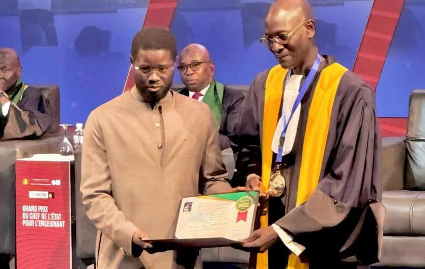 Le professeur de Collège d’enseignement moyen (CEM) en Lettres et en Histoire-Géographie au CEM Louga commune, Bara Mbengue, est le lauréat du Grand Prix du Chef de l’État pour l’enseignant, édition 2023, avec un score de 90,28 points sur 100. Il a été décoré à cette occasion de l’Ordre national du Lion et a reçu une enveloppe de 20 millions de FCFA.