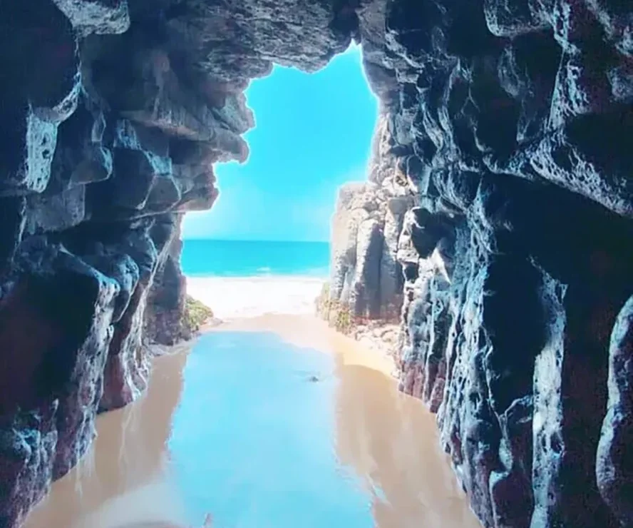 La grotte se situe en contrebas, dans une cavité souterraine qui donne sur l’océan Atlantique. On y descend par une échelle traversant une petite ouverture rocailleuse. Avant, à trois mètres près, il faut être passé par un monument qui encadre la célèbre roche portant l’empreinte pédestre de l’Imam Al Mahdi.