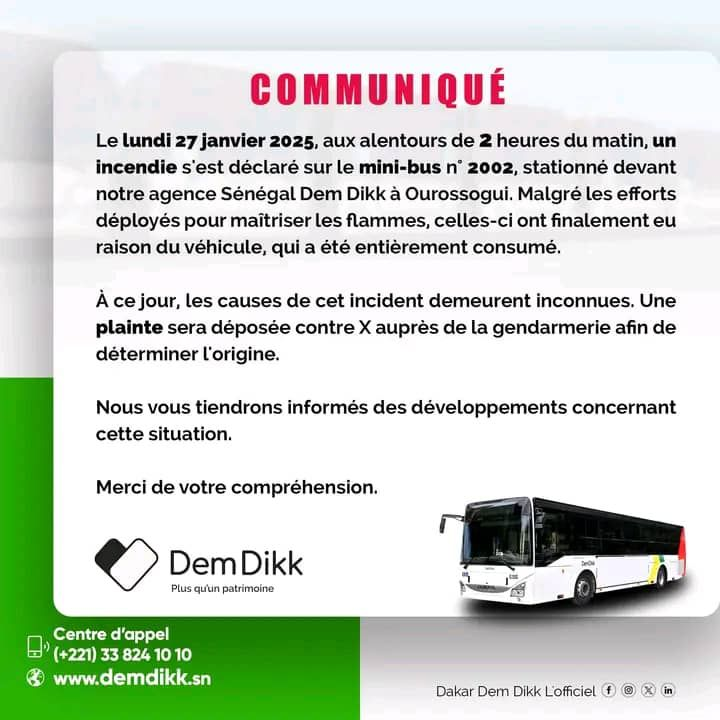 Sénégal Dem Dikk a assuré qu’elle suivra de près les investigations et informera le public des développements de cette affaire.