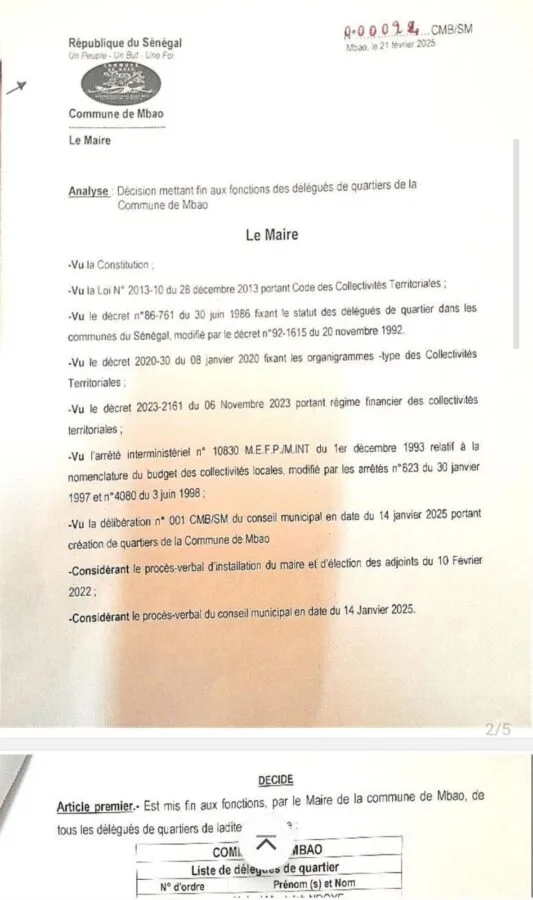 Par ailleurs, M. Pouye explique que cette décision a un caractère illégal. Il se réfère ainsi au décret n°86-761 du 30 juin 1986, cité en référence par le Maire Abdou Karim Sall. Celui-ci stipule en effet qu’un délégué ne peut être démis de ses fonctions qu’en cas d’incompétence ou s’il ne remplit pas les conditions prévues. Reste désormais à attendre la réaction du maire.
