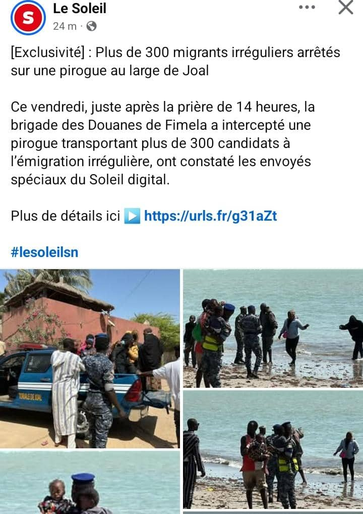 Ce vendredi, juste après la prière de 14 heures, la brigade des Douanes de Fimela a intercepté une pirogue transportant plus de 300 candidats à l’émigration irrégulière, ont constaté les envoyés spéciaux du Soleil Digital.