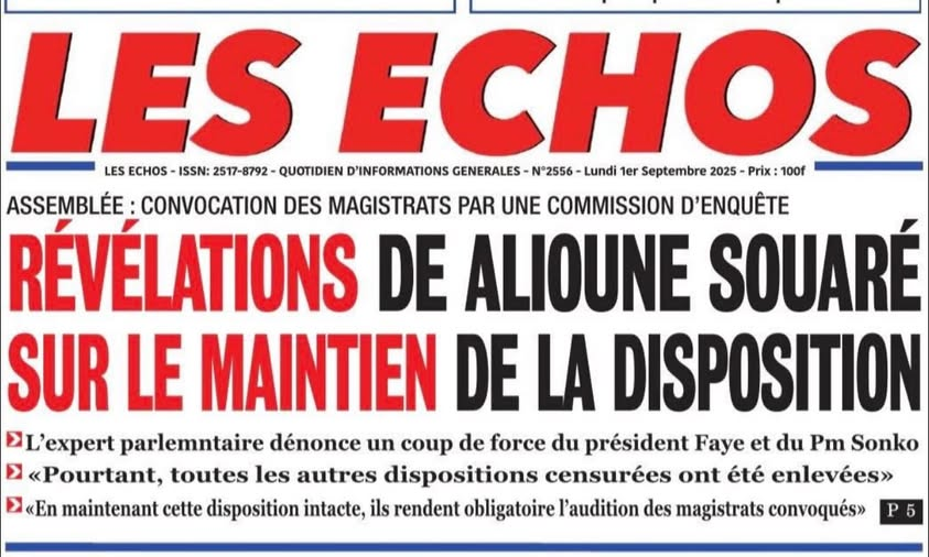Dans sa parution du jour, en Une qui plus est, le quotidien Les Échos prête à l’expert en droit parlementaire Alioune Souaré, une analyse erronée de la promulgation du nouveau RIAN.